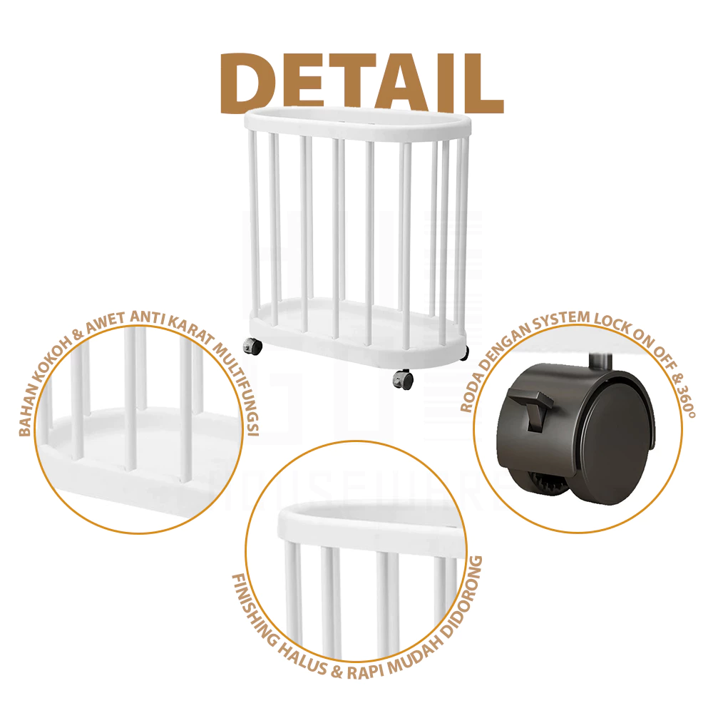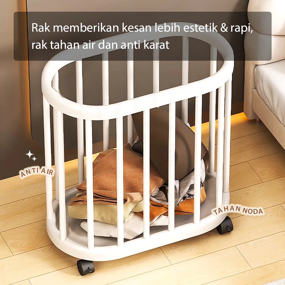 Pindahkan keranjang dengan mudah dan anggun berkat roda putar mulus untuk kenyamanan maksimal di setiap sudut rumah.
